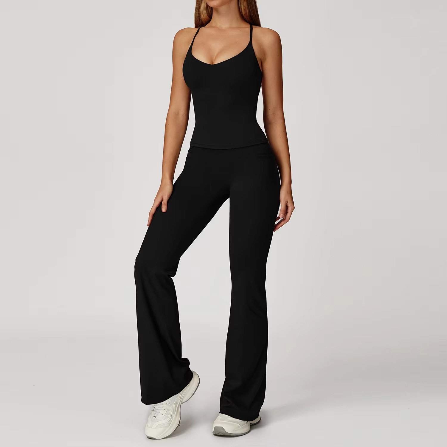 Arvani | CoreBalance Workout Suit - 2-Piece Gym Outfit Sleeveless Top and Flare Pants