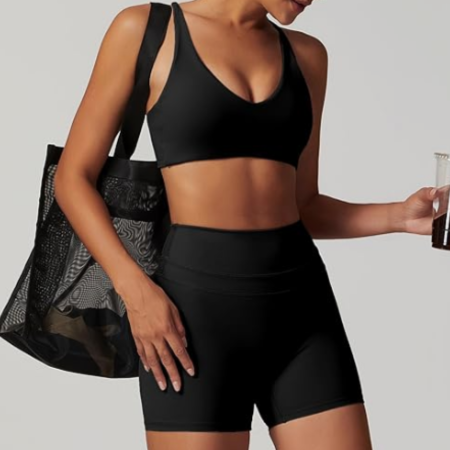 The Eryndra VitalMove Yoga Set - Sport Bra with Matching Shorts for Active Comfort is crafted to deliver maximum support and freedom of movement for your workouts. This set features a durable sport bra designed for secure fit and comfort, paired with flexible shorts that allow ease during every pose and activity. With a streamlined silhouette, it enhances both performance and style. Made from stretchable, breathable fabric, it ensures quick-drying comfort and long-lasting wear. Perfect for yoga, fitness, or casual training, this set balances active energy with modern appeal.
