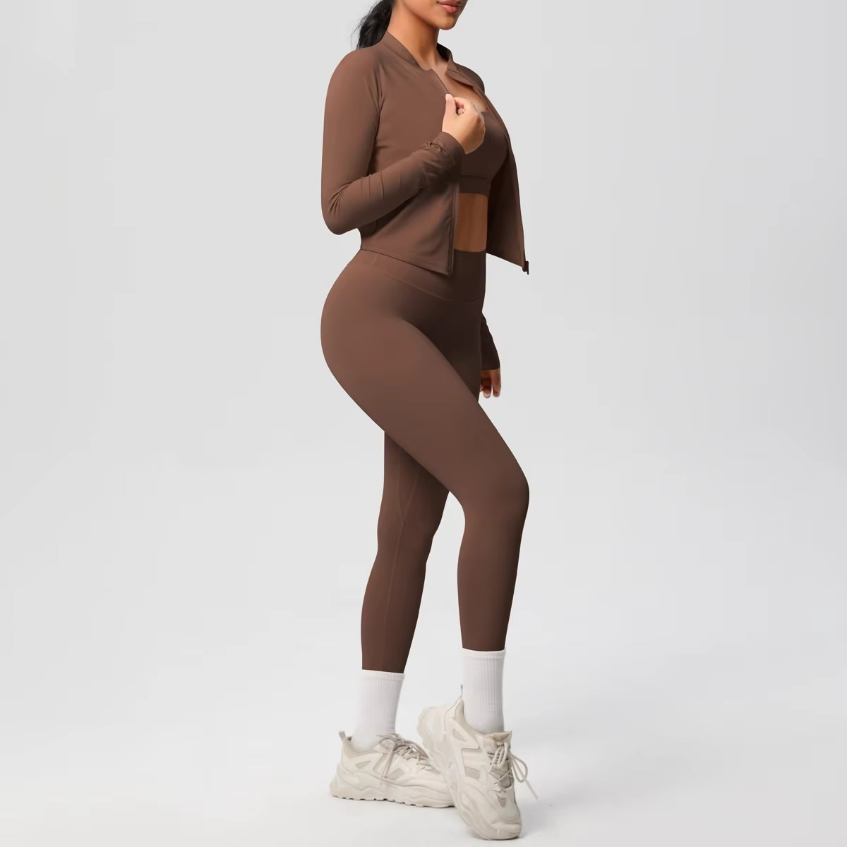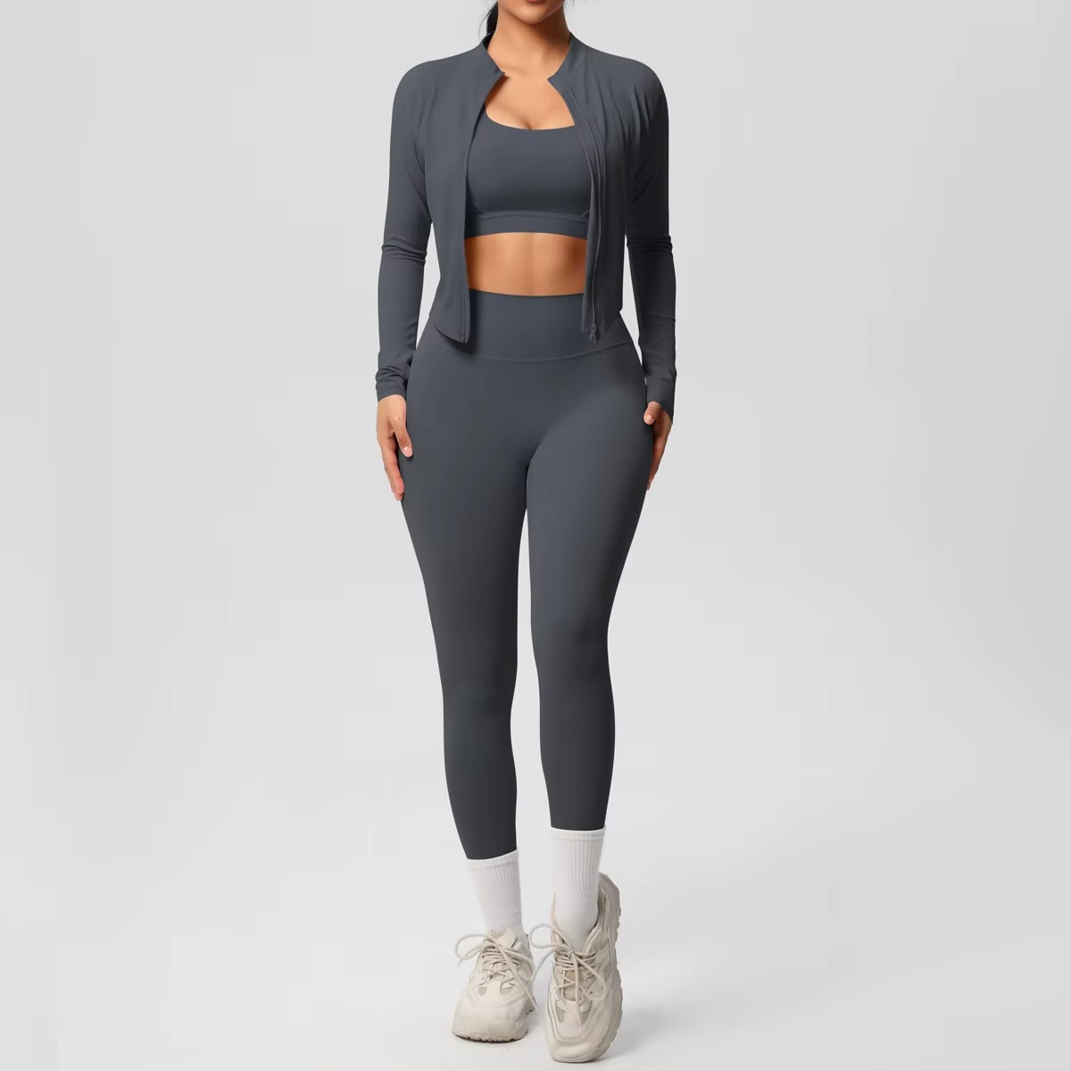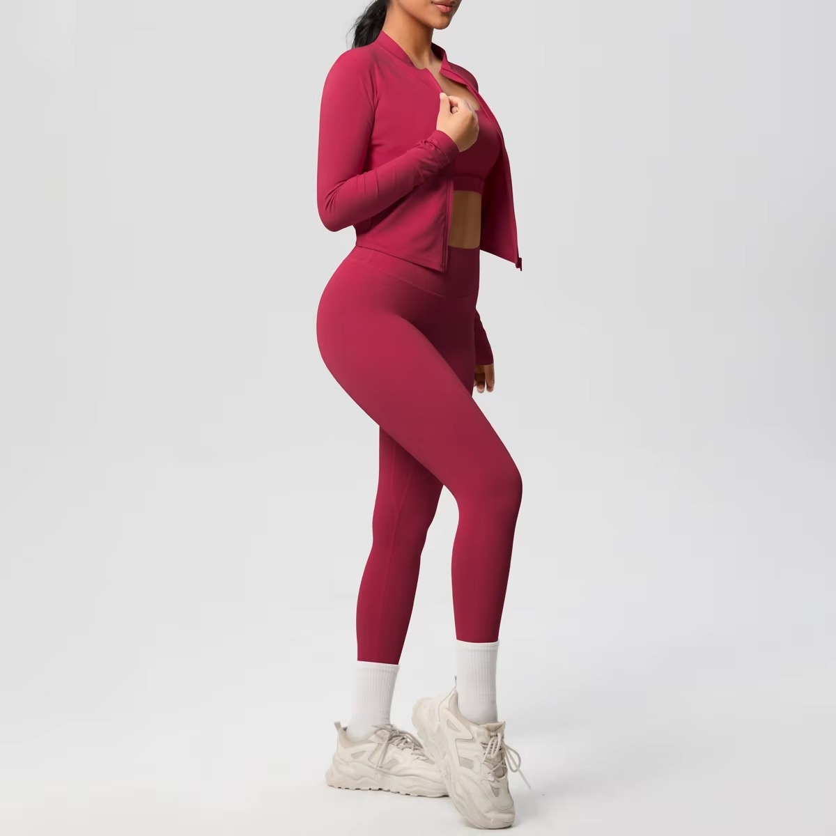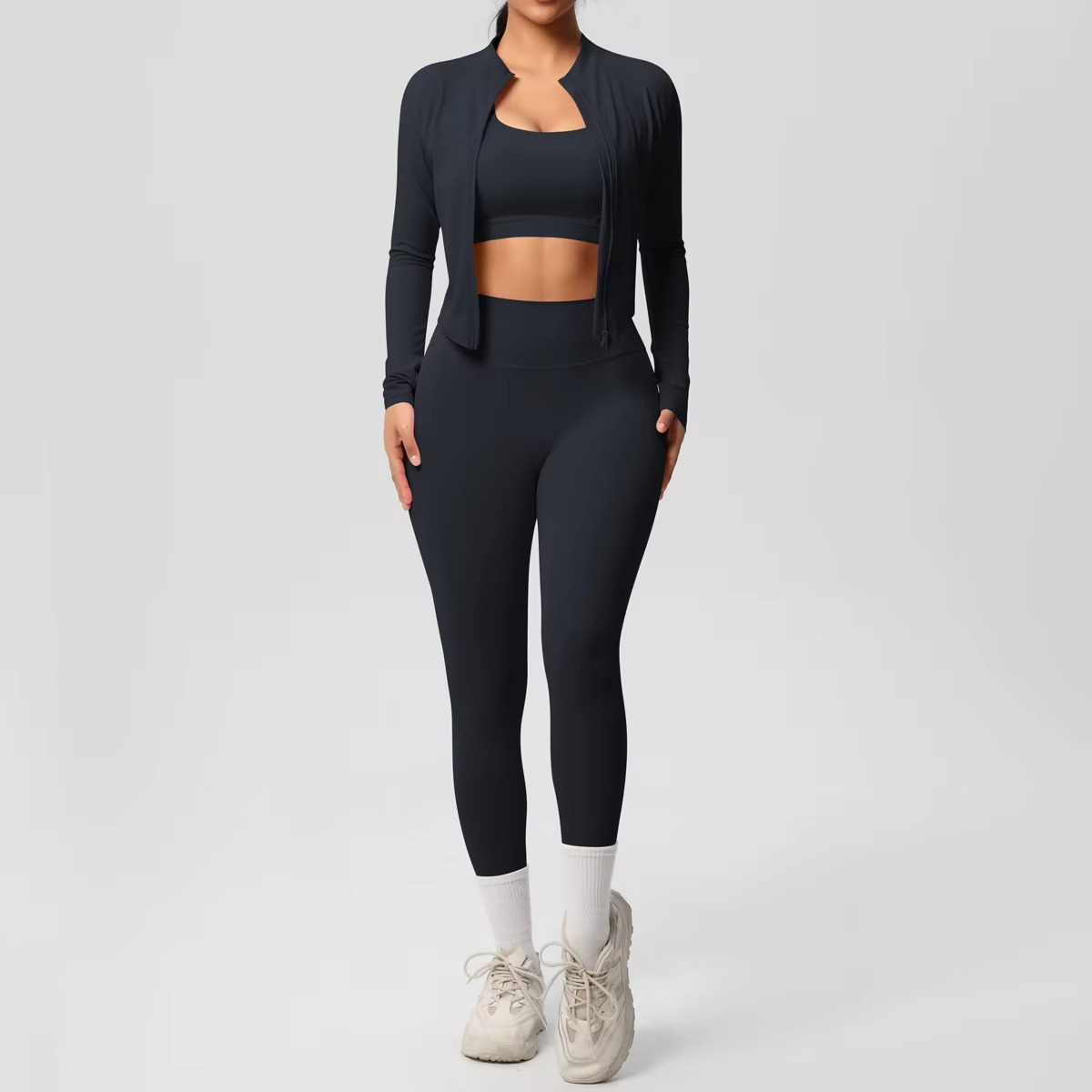 - 3-Piece Set: Includes sports bra, jacket, and leggings for a complete fitness outfit.