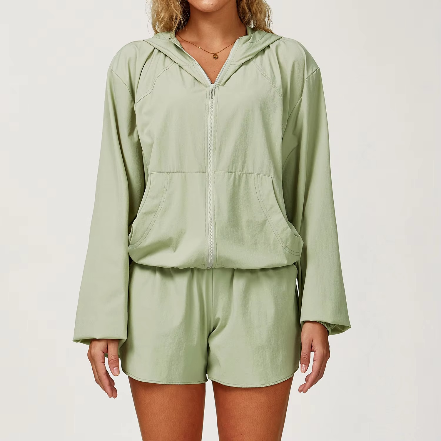 The Velira SwiftGuard Workout Wear - Breathable Zipper Jacket Designed for Sun Protection is built for active individuals who need both performance and coverage. Featuring a lightweight zipper jacket, it provides reliable sun protection while ensuring breathability and comfort during workouts or outdoor activities. Its sleek design allows for unrestricted movement, making it suitable for running, training, or casual wear. Crafted from quick-drying, stretchable fabric, it delivers flexibility, durability, and lasting freshness. Perfect for layering or solo use, this jacket combines protection with modern athletic style.
