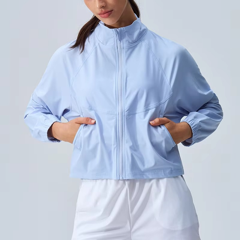 Calyra | SwiftTrack Athletic Jacket - Cropped Full-Zip Shirt with Sun Protection