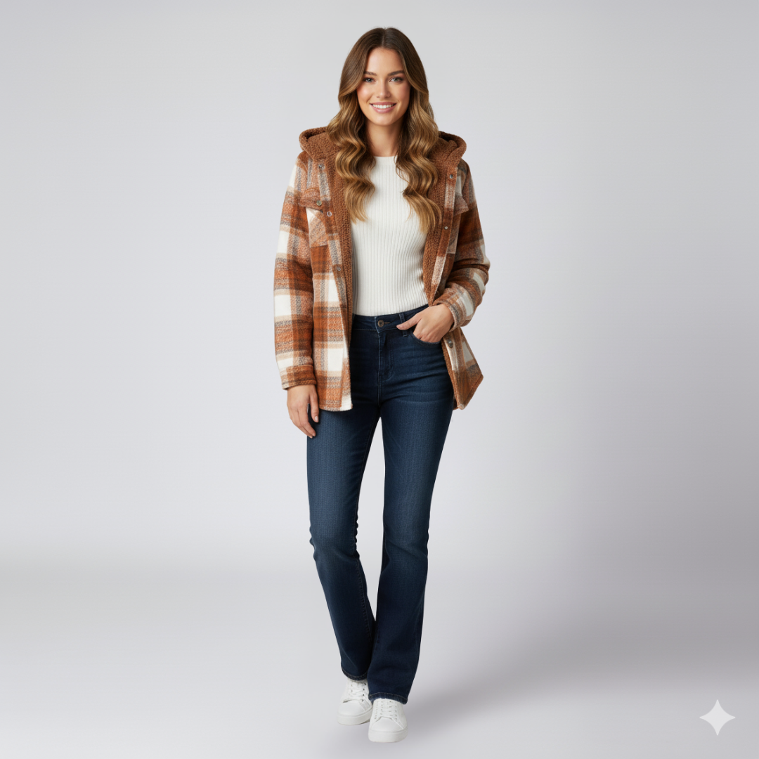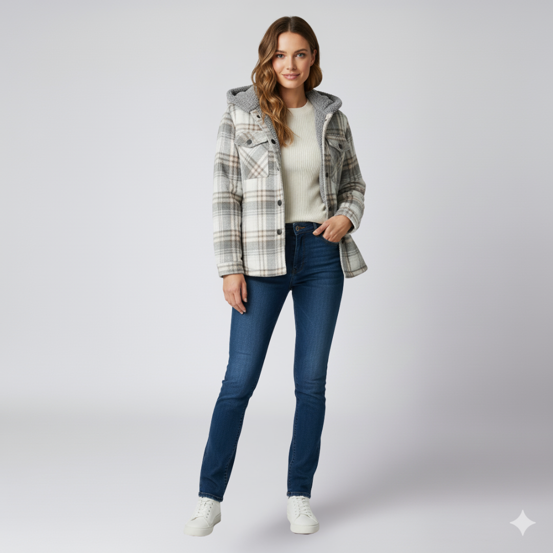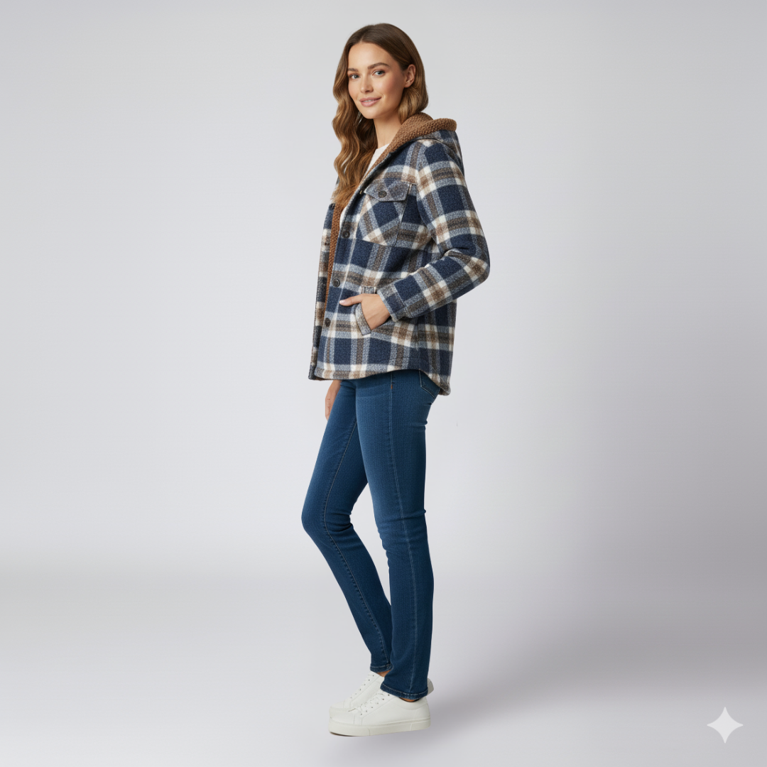 Elizabeth | Autumn Jacket - Hooded Plaid Outerwear for Women