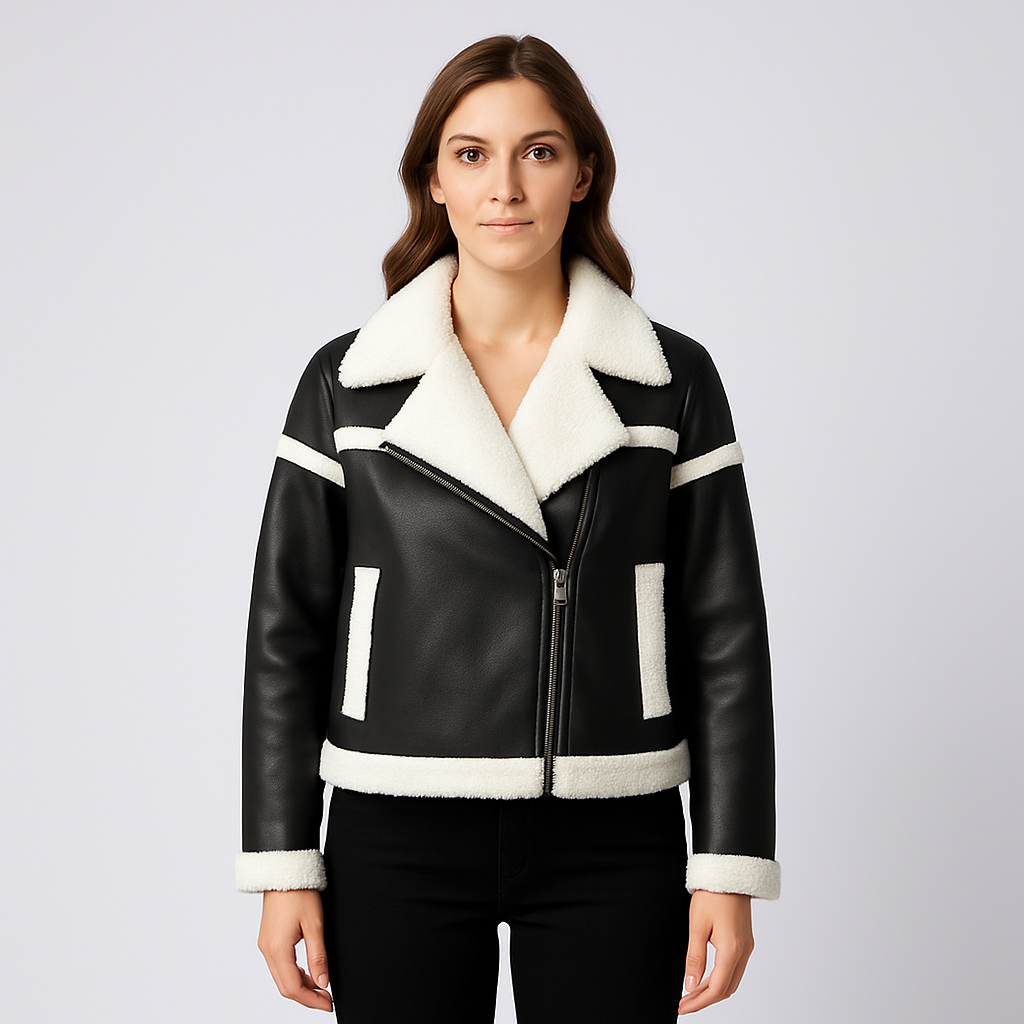 Deborah | Women's Timeless Stylish Faux Fur Winter Leather Jacket