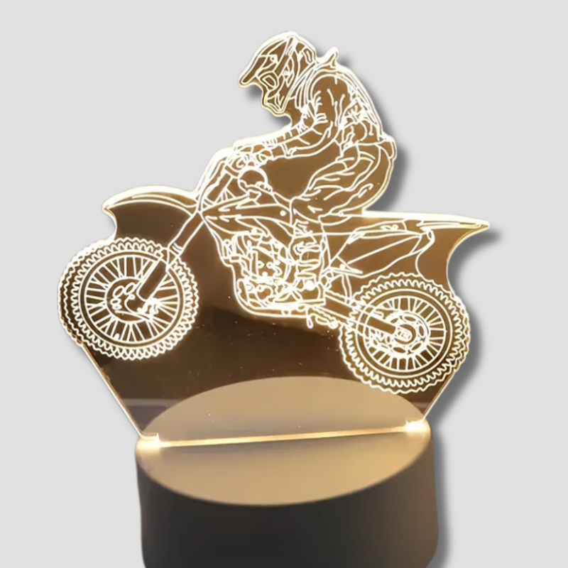 Bring the energy of motorsports into your home with the VelocityBeam - 3D LED Motocross Lighting This unique 3D illusion lamp not only offers striking lighting but also a sporty design that fits perfectly in your living room, bedroom, or gym.