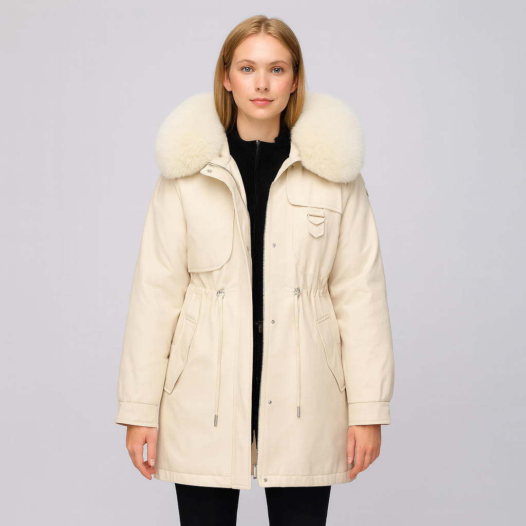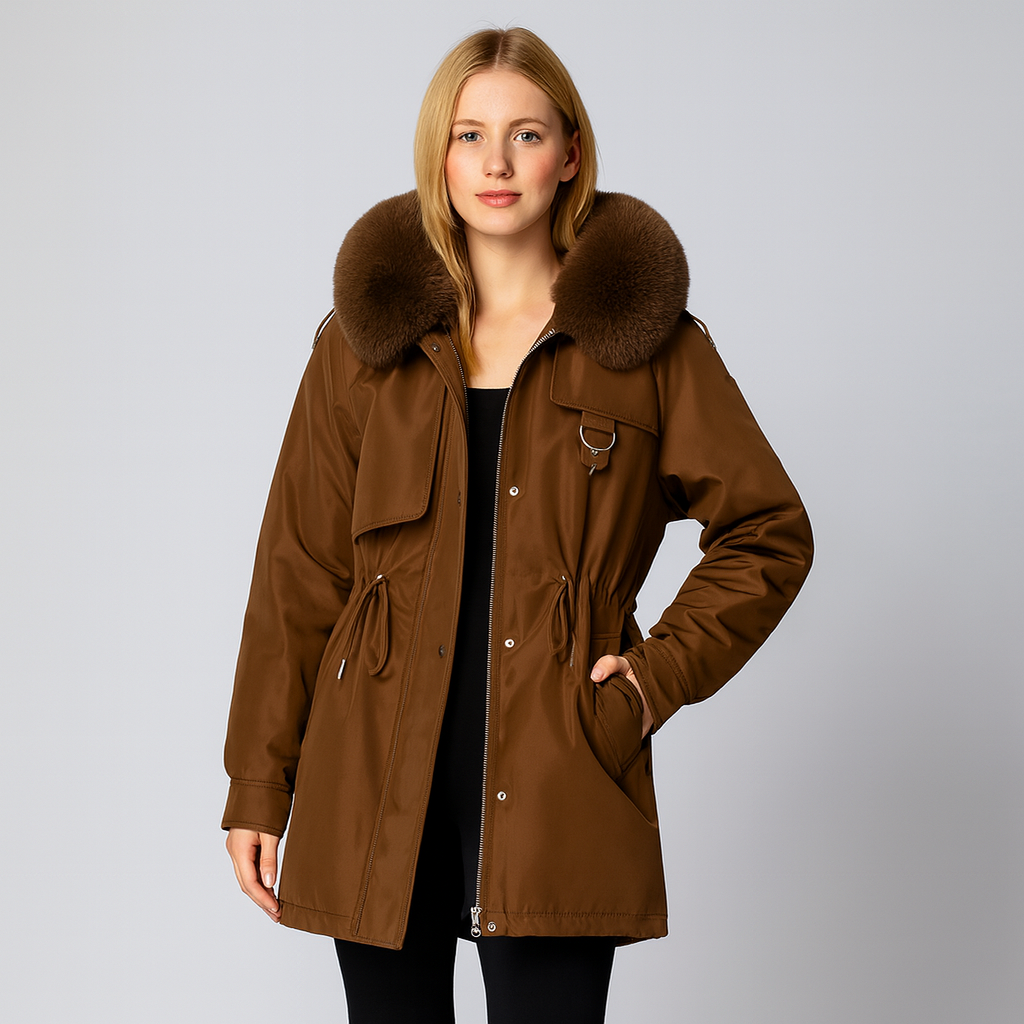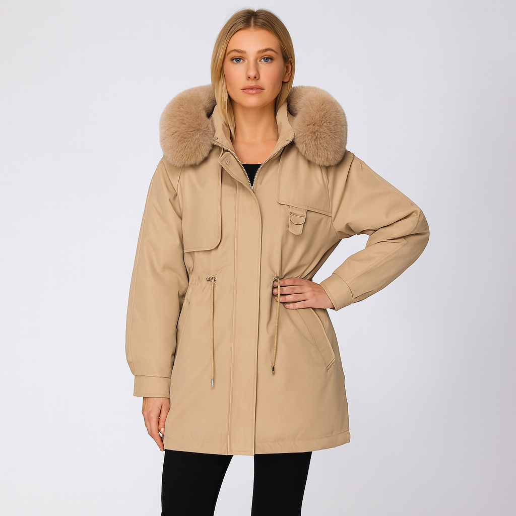 The Zeyrina | AeroShield Outerwear - Stylish Weatherproof Oversized Parka Jacket delivers exceptional protection, comfort, and style for cold and wet weather. Crafted with weather-resistant fabric, this oversized parka shields you from wind, rain, and snow while providing a relaxed, modern fit. The faux fur-trimmed hood adds warmth and an elegant accent, perfect for city streets or outdoor adventures. Its mid-length cut offers versatile coverage without compromising mobility. Stay cozy and fashionable in a parka designed for both functionality and contemporary style.