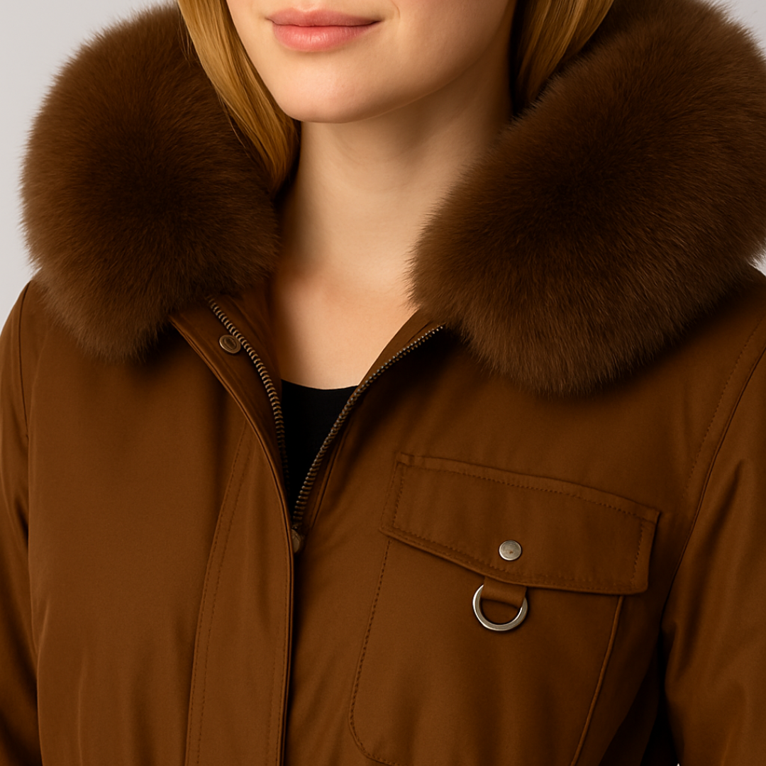 • Faux Fur Hood: Adds warmth and a stylish detail.